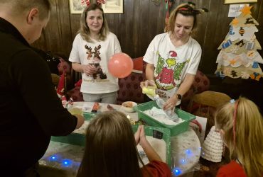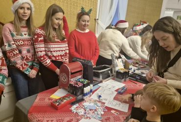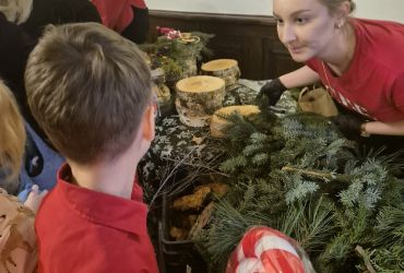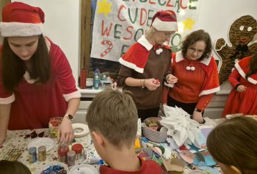 Zajęcia cieszyły się tak dużym zainteresowaniem, że chętnie brali w nich udział również dorośli, co nadało spotkaniu rodzinny charakter i w piękny sposób połączyło różne pokolenia. Wspólna twórczość, zabawa i obecność Świąt w tle sprawiły, że był to wyjątkowy czas – zarówno dla najmłodszych, jak i dla studentów, którzy mogli sprawdzić się w roli przyszłych pedagogów w realnej, pełnej emocji przestrzeni edukacyjno-animacyjnej.