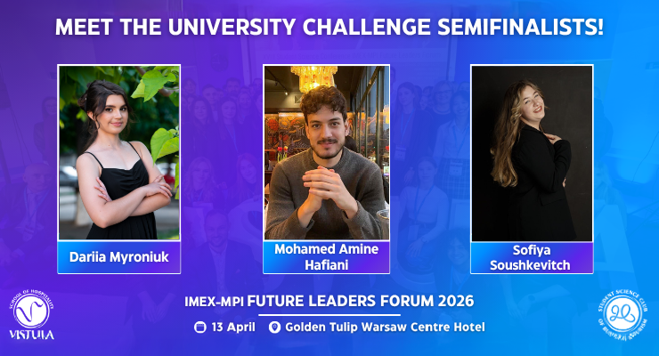 Z dumą informujemy, że troje studentów naszej uczelni znalazło się w gronie półfinalistów prestiżowego IMEX-MPI University Challenge 2026. To wyjątkowe wyróżnienie otrzymali: